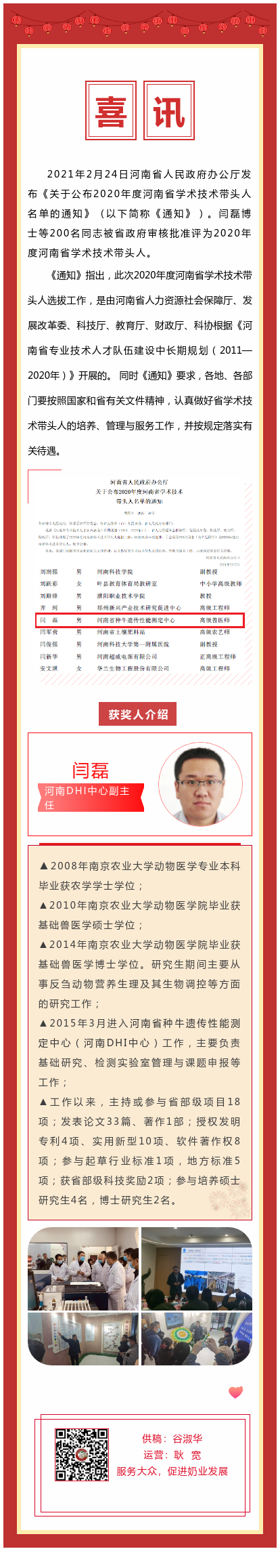 喜讯:闫磊同志被评为2020年度河南省学术技术带头人!