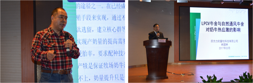 中刍联众畜牧科技有限公司任文俊老师就当前形势下,中小牧场如何突破发展,特别针对中小牧场面临问题以及应对措施,给大家精心授课。四方力欧牧场管理事业部韩国林总经理做题目为LPCV牛舍与普通牛舍对奶牛热应激的影响的培训。