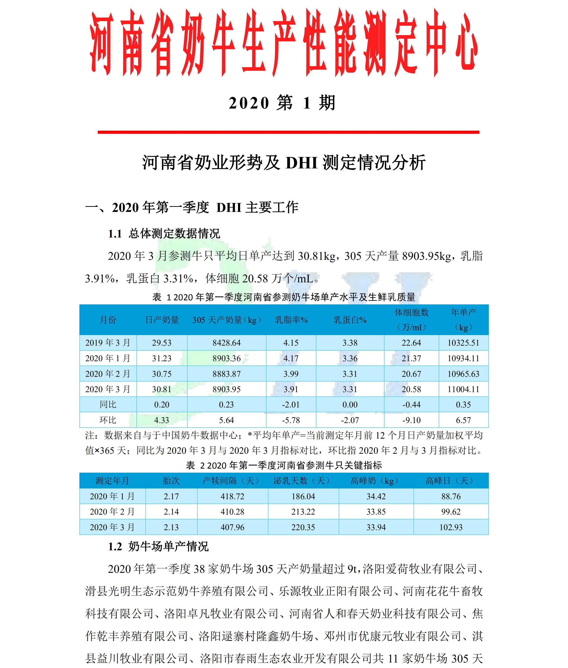 河南省奶业形势及DHI测定情况分析(2020年第一季度)